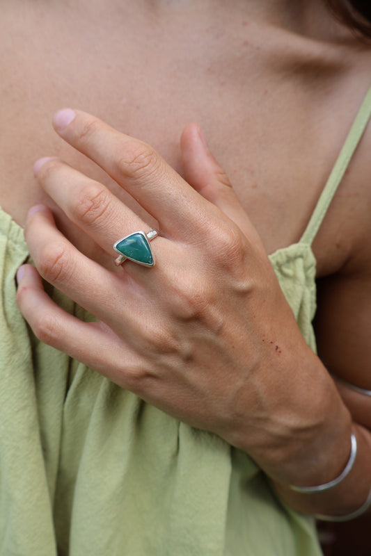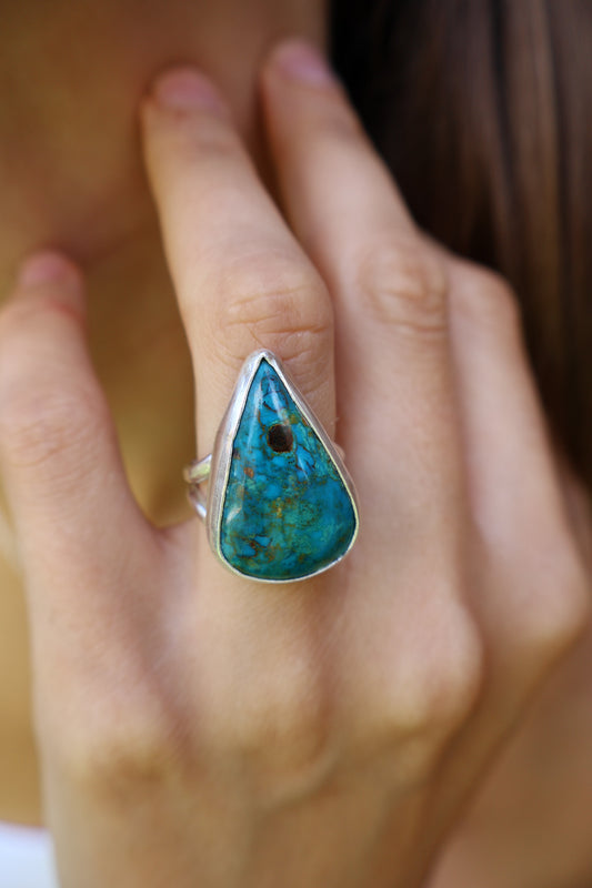 Chunky Blue Chrysocolla Teardrop Spit Band Sterling Silver Ring
