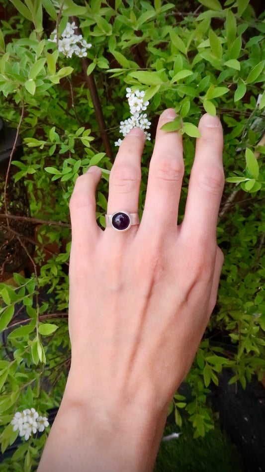 Green Chrysoprase Round Sterling Silver Hammered Ring