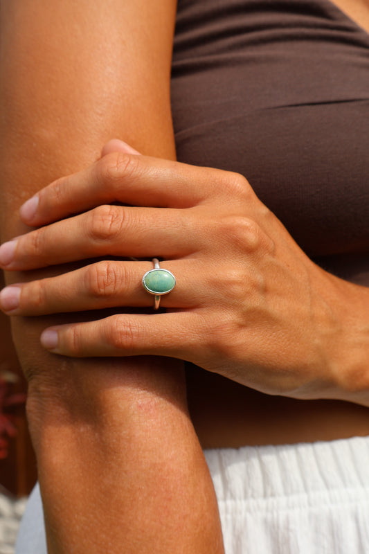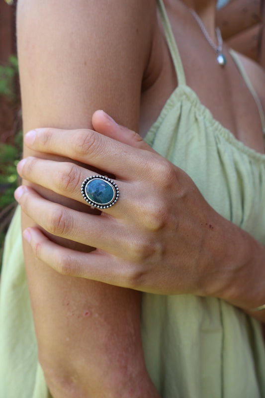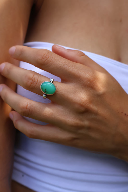 Green Chrysoprase Round Sterling Silver Hammered Ring