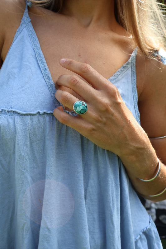 Hubei Tibetan Turquoise Chunky Sterling Silver Split Band Ring