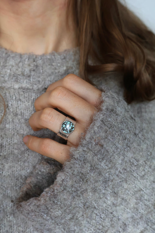 Hubei Tibetan Turquoise Chunky Sterling Silver Split Band Ring