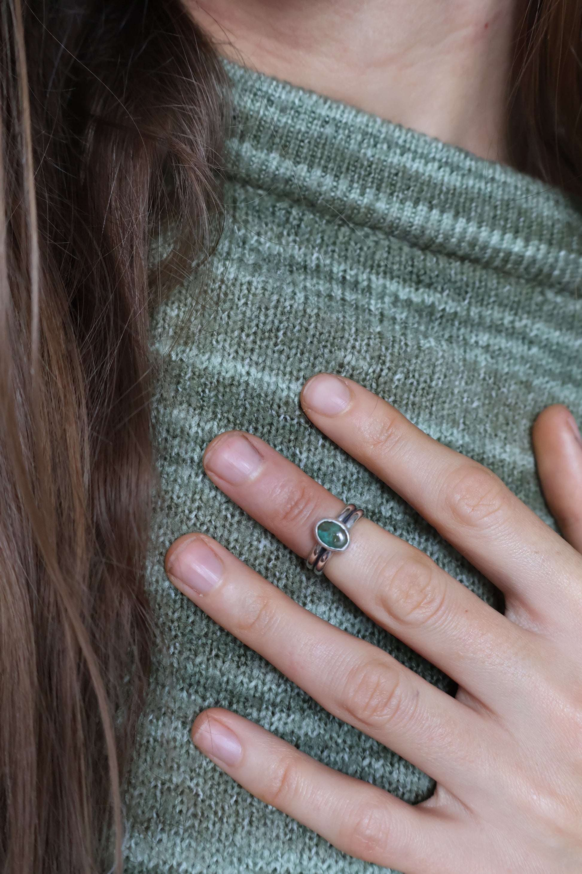 this beautiful midi/pinky ring is a stable in every earthy and boho wardrobe to show your uniqueness. she has been handmade by me in my little studio with sterling silver and holds the most beautiful turquoise gemstone.