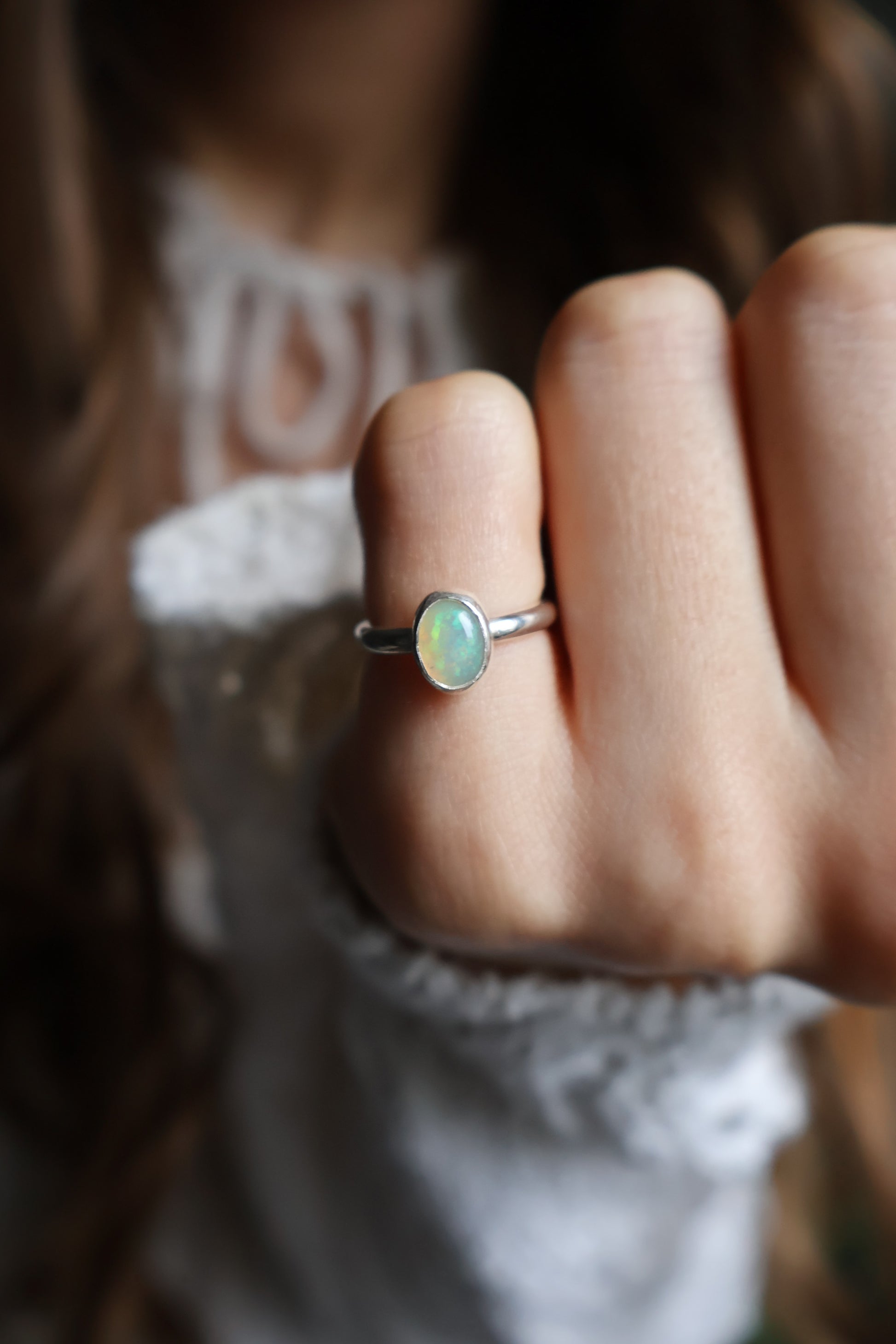 opal sterling silver midi ring