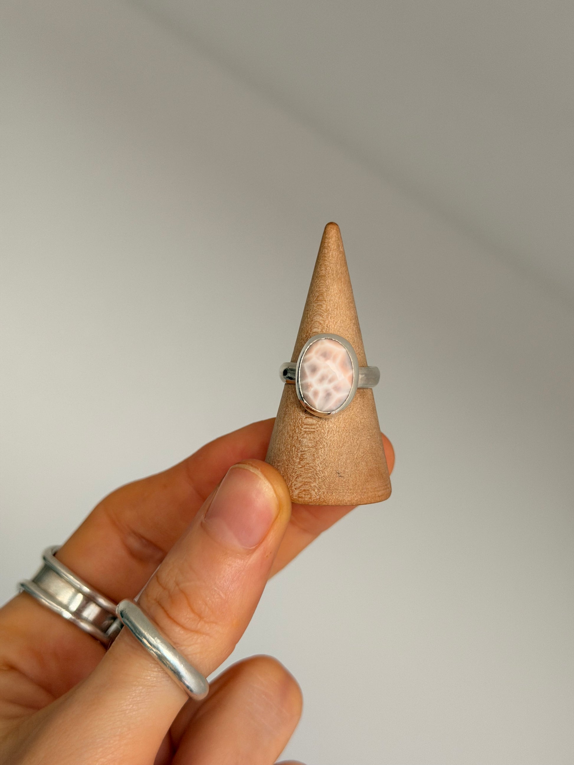 pink sea sterling silver ring size J